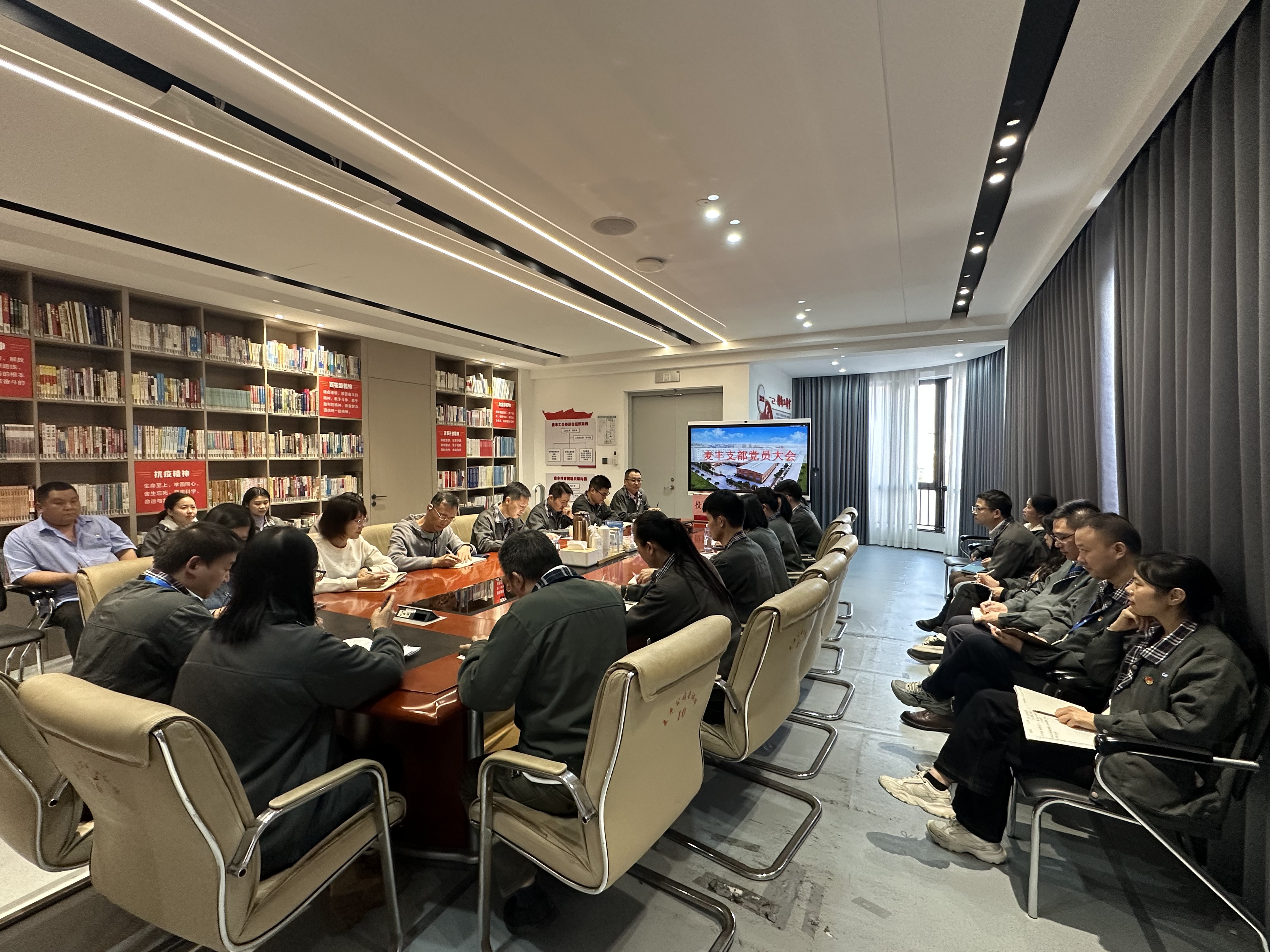 11月28日下午,麦丰公司党支部在党群活动中心4楼会议室召开了党员大会,会议研究讨论了接收何章连、黄丽惠两位同志为中共预备党员。会议由书记温欣鼎主持,上级工业园区党工委委派了柯朝阳、叶雪列席参加了会议。