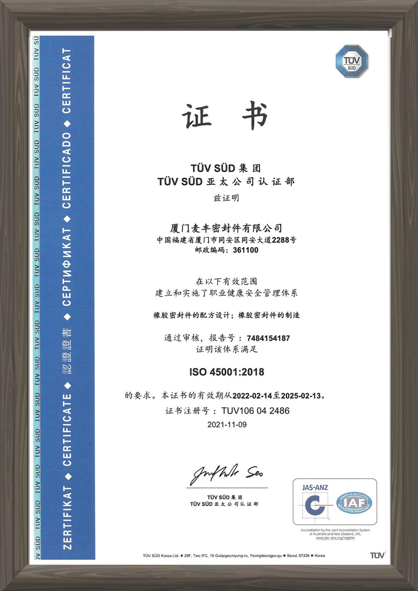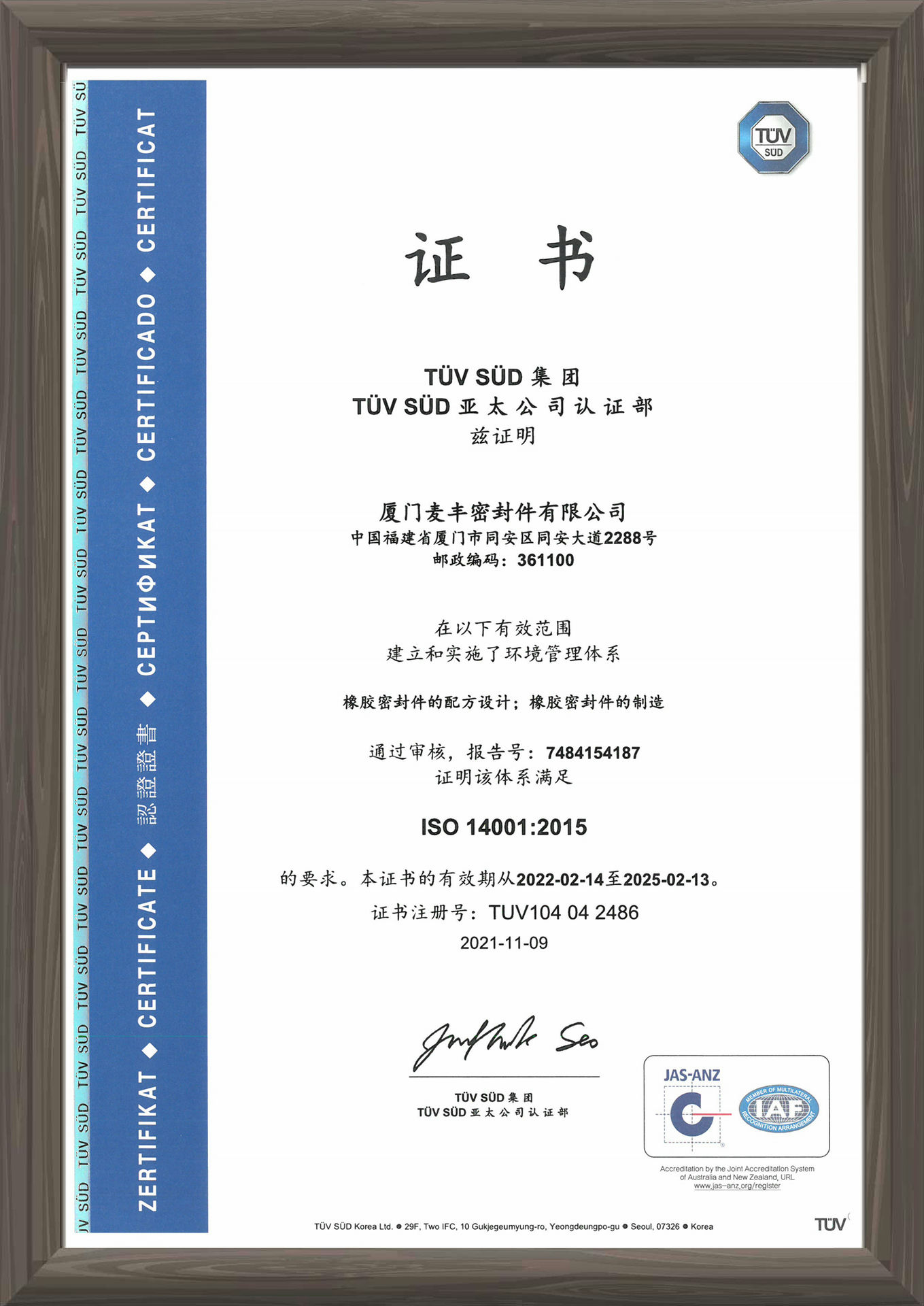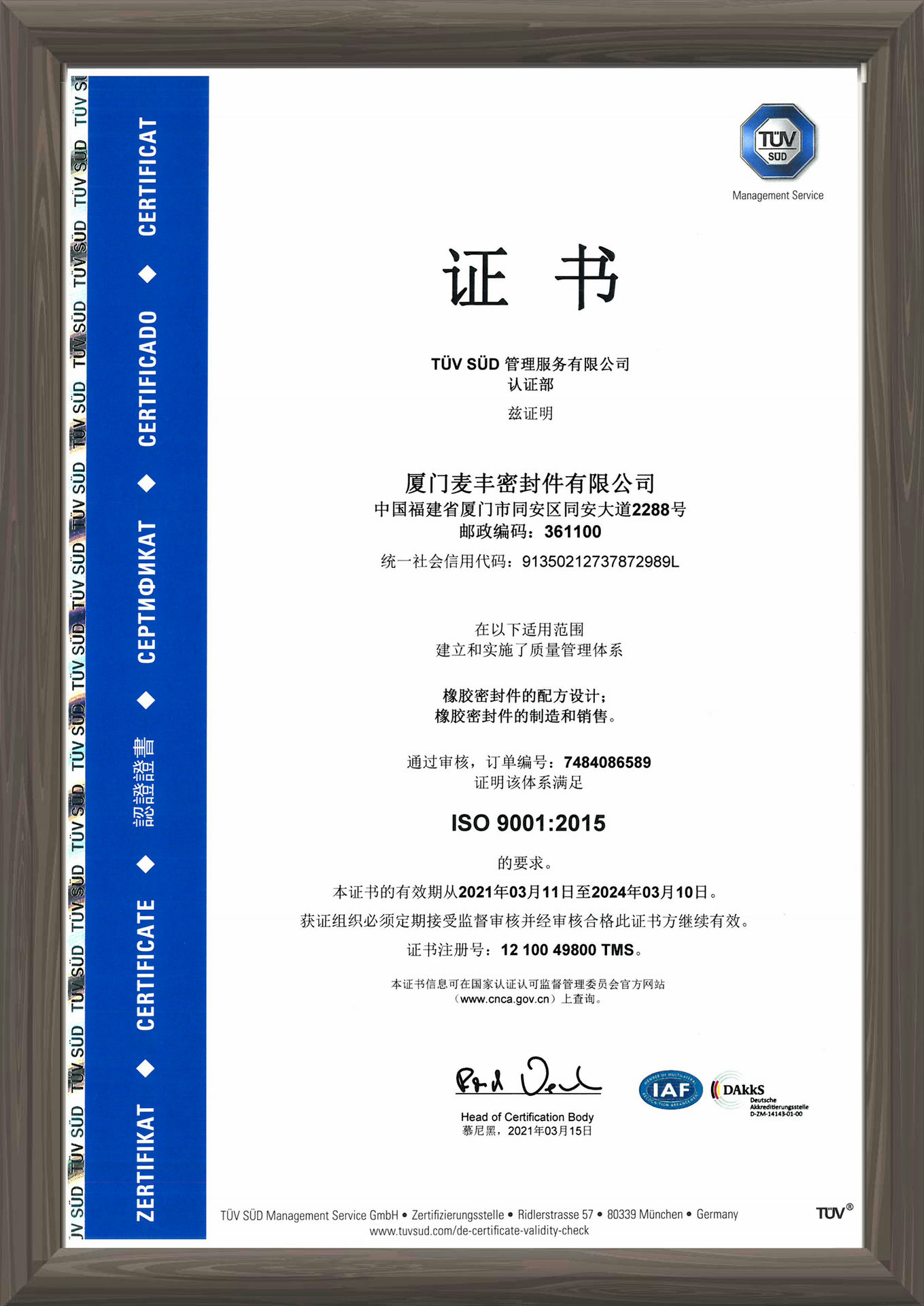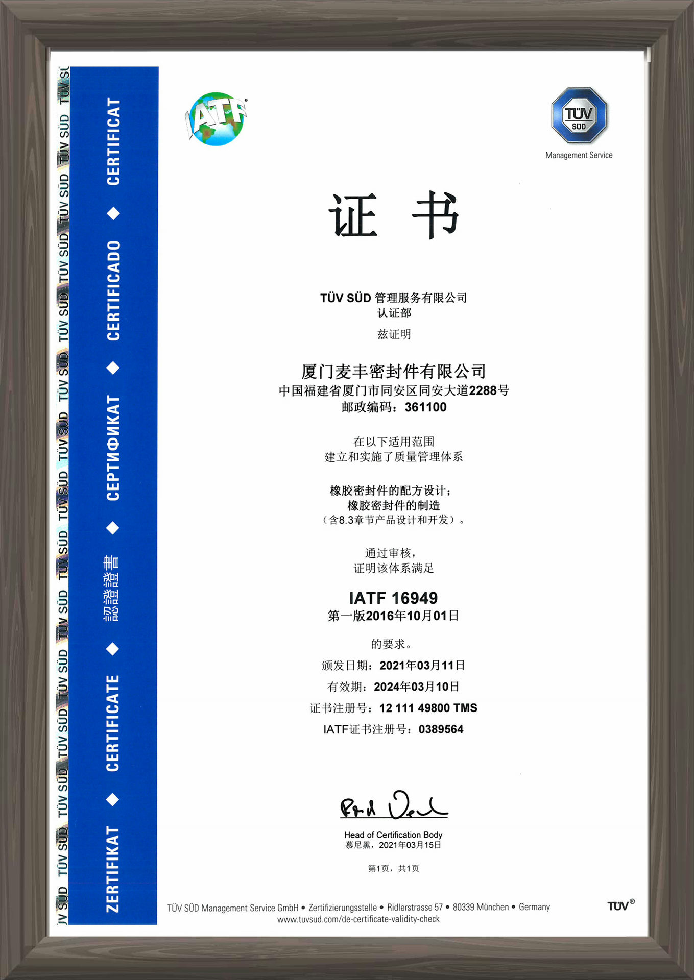 麦丰的原材料和产品通过全球主要国家不同行业的认证和相关法规要求,是橡胶密封件全球认证最齐全、最多的企业之一,确保公司产品和客户的产品安全进入国际市场。